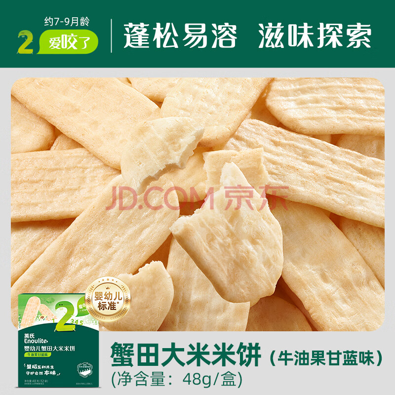 商品相册:英氏(Engnice)婴幼儿蟹田米饼牛油果味宝宝零食磨牙饼干酥脆哄娃解馋营养48g第