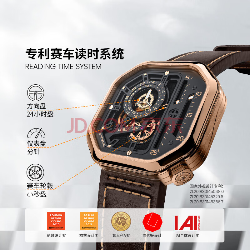 商品相册:爱勒 AGELOCER原创赛车时尚男镂空机械手表个性腕表送男友生日礼物第