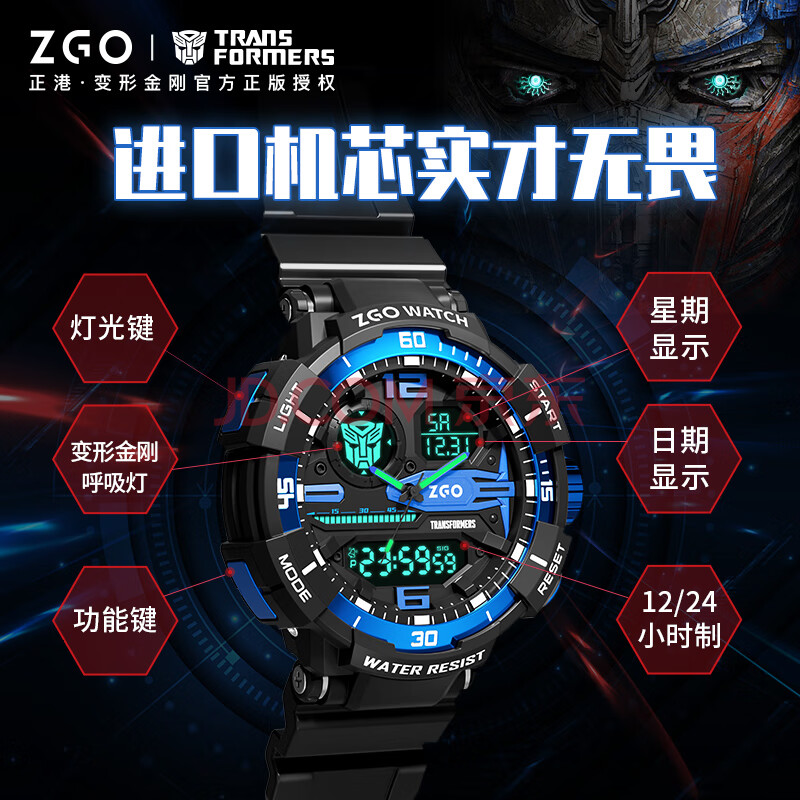 商品相册:正港(ZGO)手表男学生专用初高中生电子手表儿童多功能运动手表生日礼物8981第1张/共7
