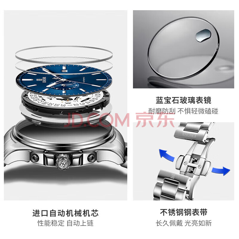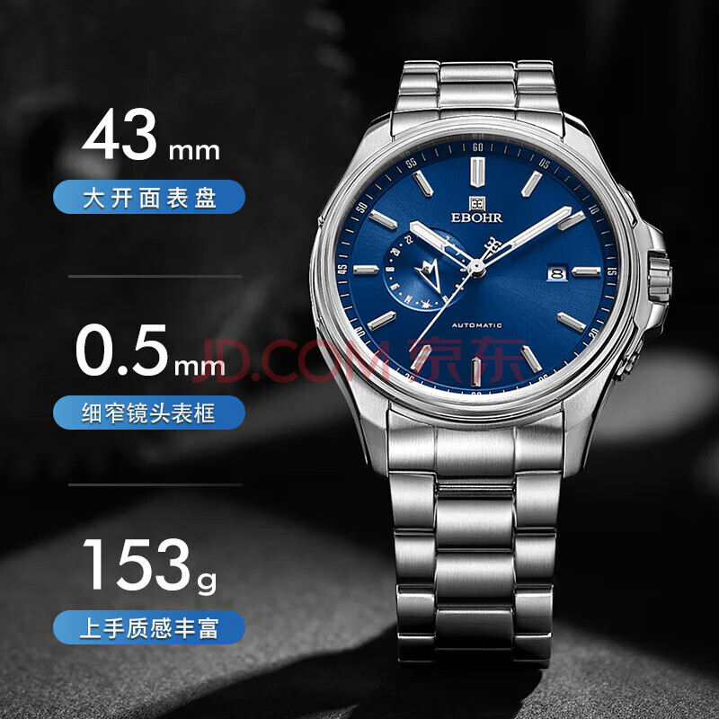 商品相册:依波(EBOHR)手表男 探索者系列生日节日礼物钢带男士机械腕表51260217第