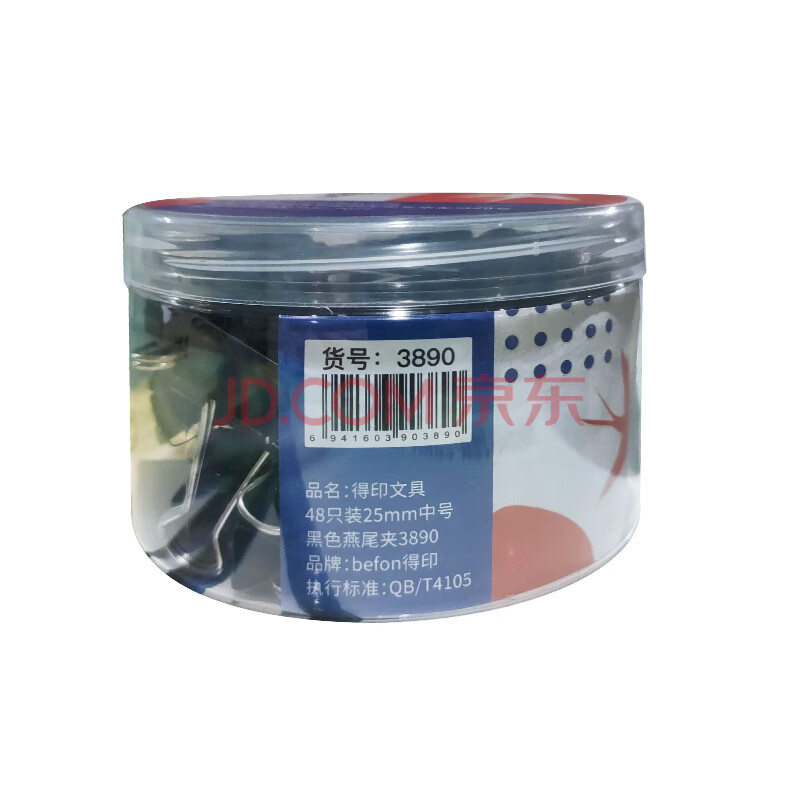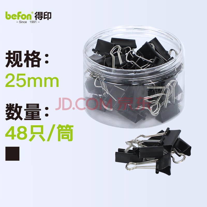 商品相册:得印长尾夹48只25mm燕尾夹4#中号黑色 多规格纸票夹金属夹子学生试卷票单据小夹子办公用品48只/筒3890第
