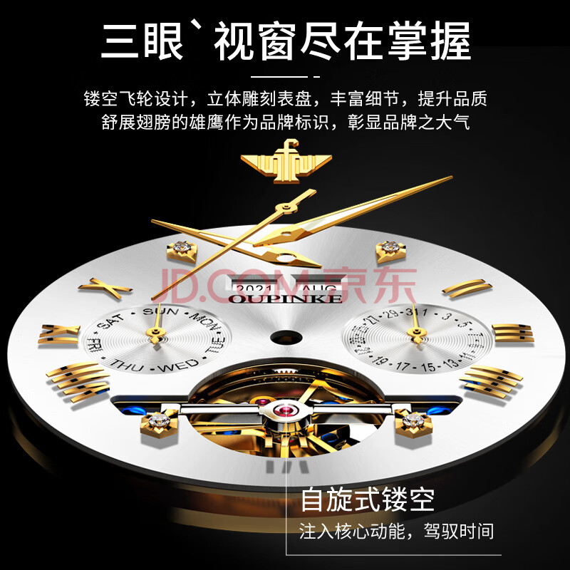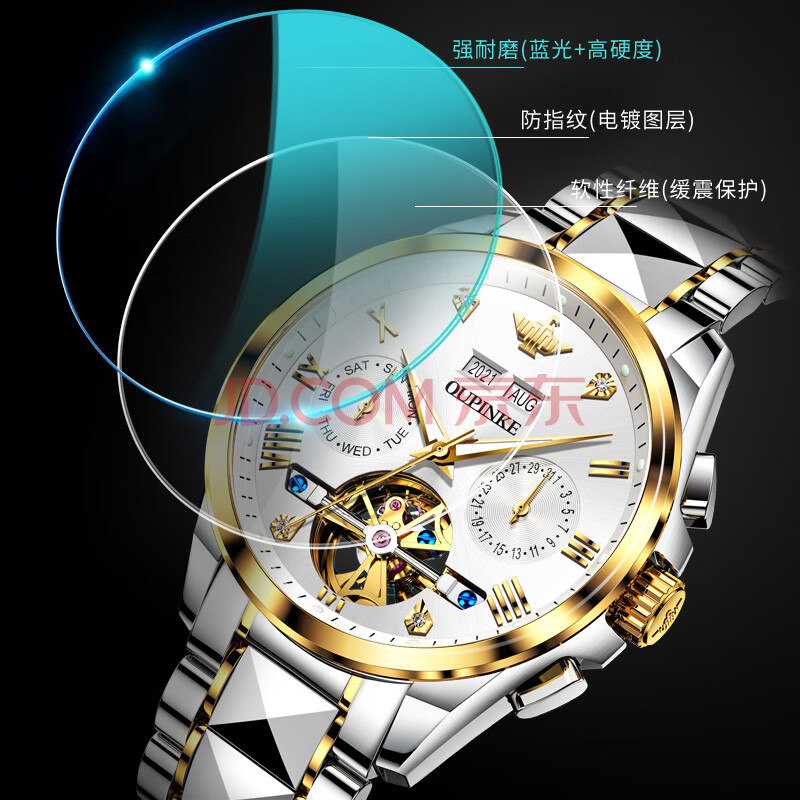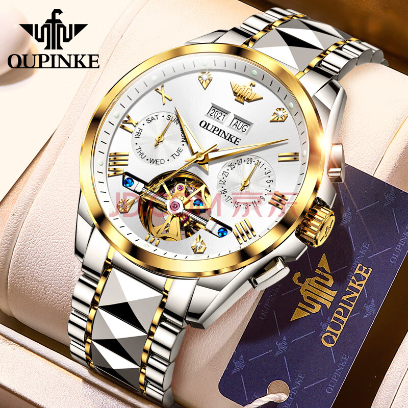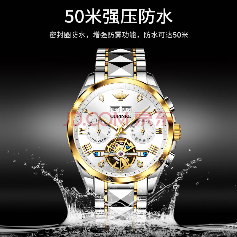 商品相册:欧品客男士手表机械全自动机械手表男飞轮瑞士认证品牌礼物京东自营腕表第