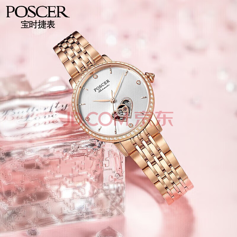 商品相册:宝时捷(POSCER)手表女士生日礼物送女友心形镂空机械女表十大品牌手表51021第