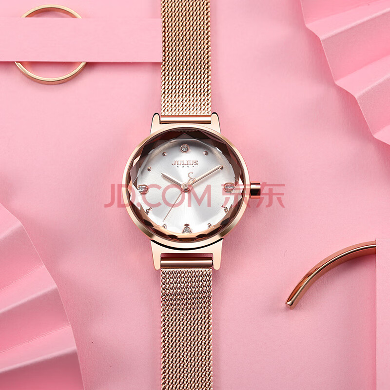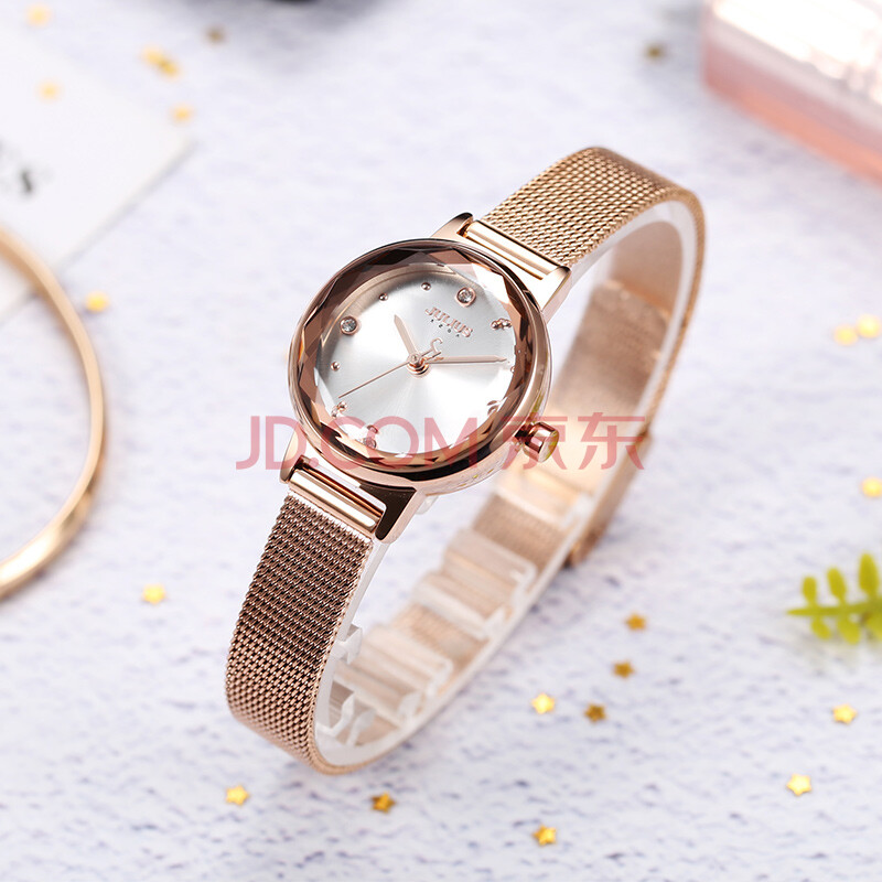 商品相册:聚利时(Julius)手表女时尚韩版简约小巧潮流学生石英女士手表玫金白盘JA-917C第