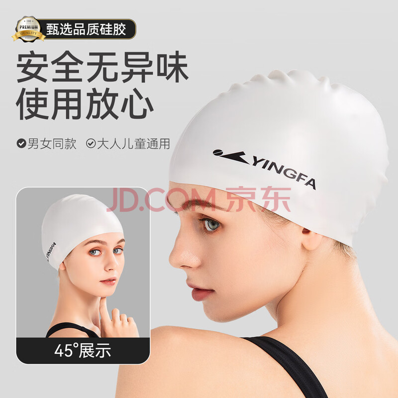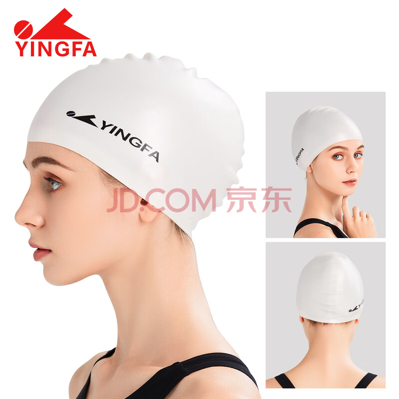 商品相册:英发(YINGFA)泳帽 纯色硅胶长发防水舒适不勒头男女通用成人游泳帽 白色第