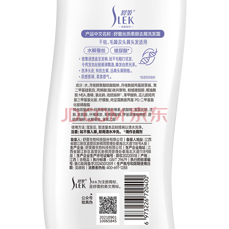 商品相册:舒蕾顺滑去屑洗发水600g抚平毛躁蚕丝蛋白保湿玻尿酸洗头膏 年货福利第