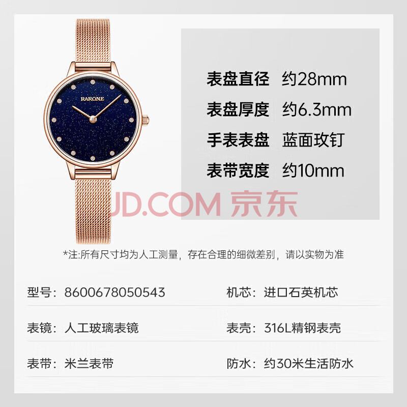 商品相册:雷诺(RARONE)时尚两针石英女士手表轻巧钢带腕表小众 送女生女友生日礼物第