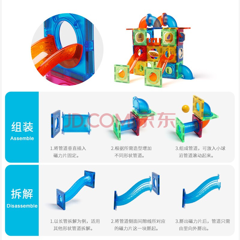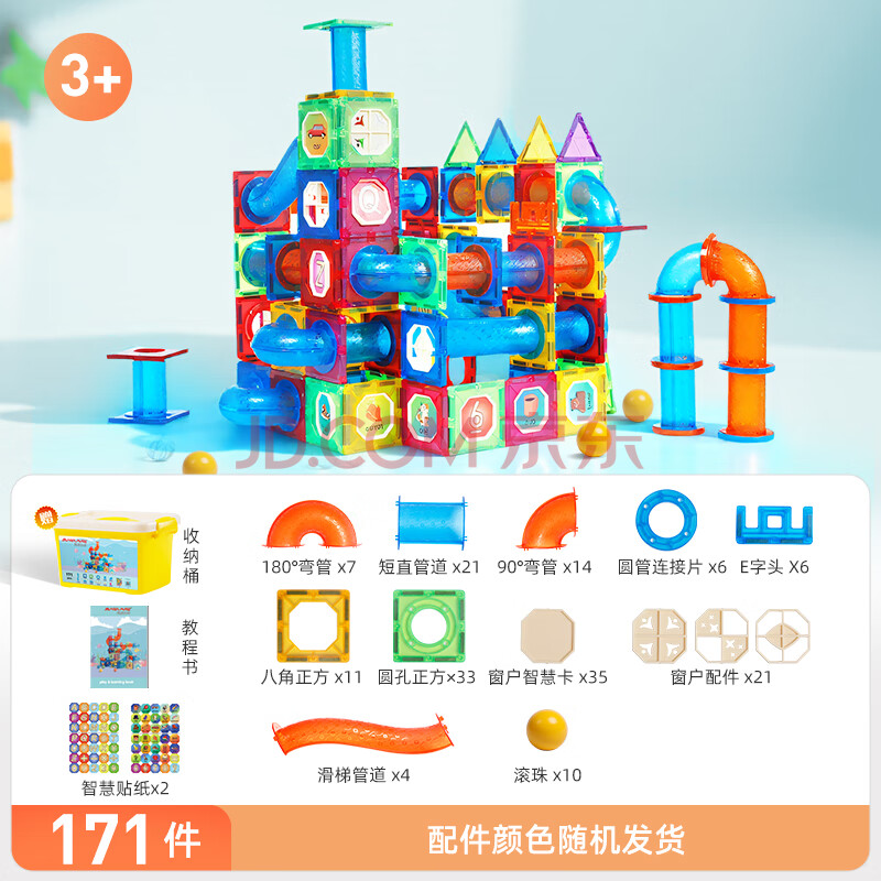商品相册:魔磁玩家( MAGPLAYER)彩窗磁力片儿童玩具管道滚珠磁力积木171件男女孩3-6岁生日礼物第
