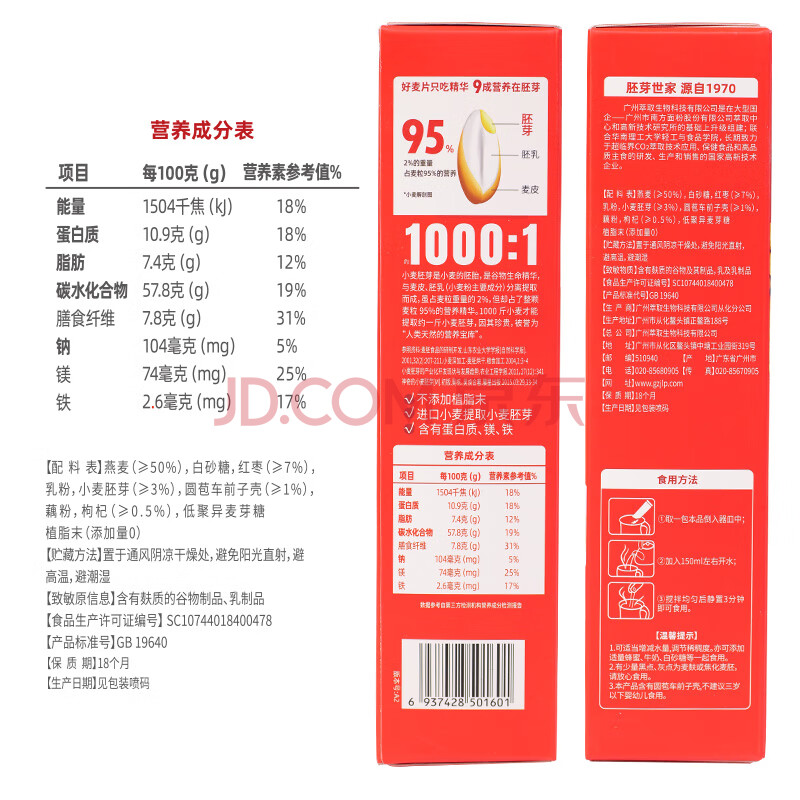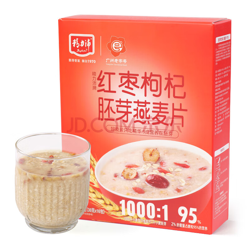 商品相册:精力沛红枣枸杞小麦胚芽燕麦片480g/盒牛奶麦片即食冲泡早餐送礼礼品盒第