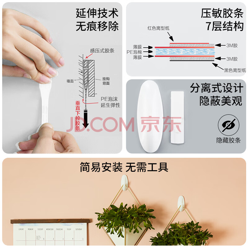 商品相册:3M挂钩免打孔 强力门后粘钩无痕不伤墙 高曼设计家系列大号1只第