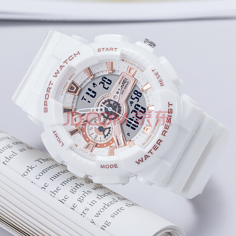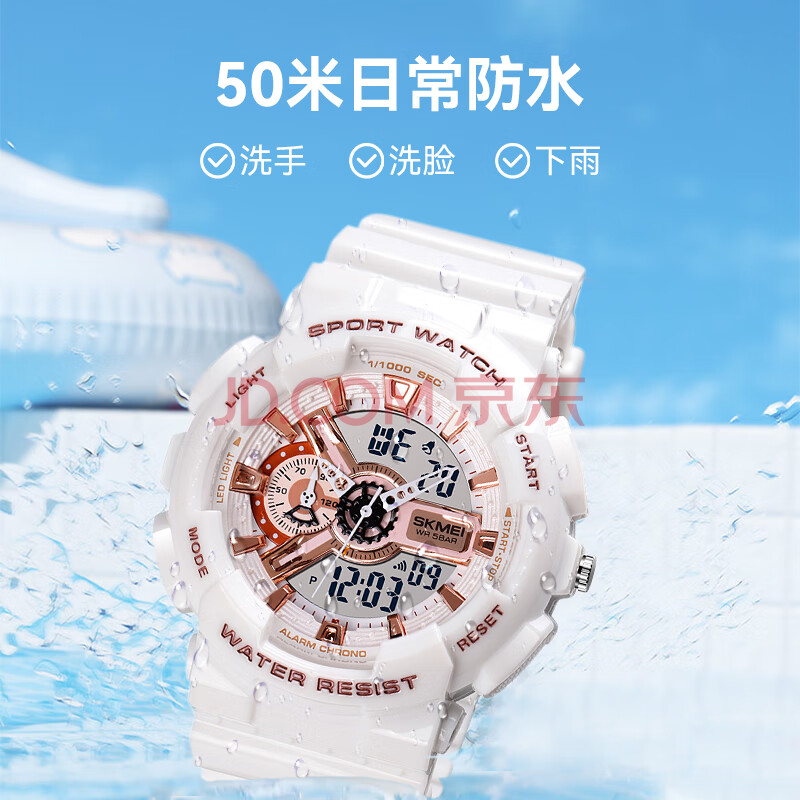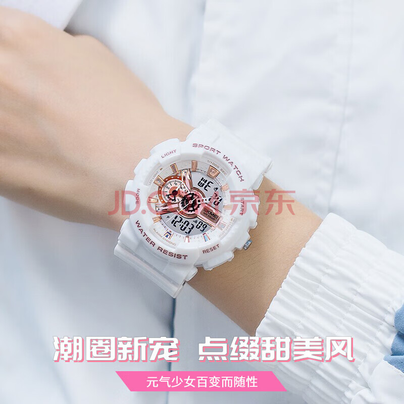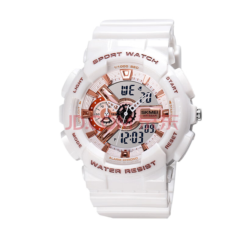 商品相册:时刻美(skmei)学生手表儿童初高中生运动电子表夜光闹钟防水多功能女生1688白色第