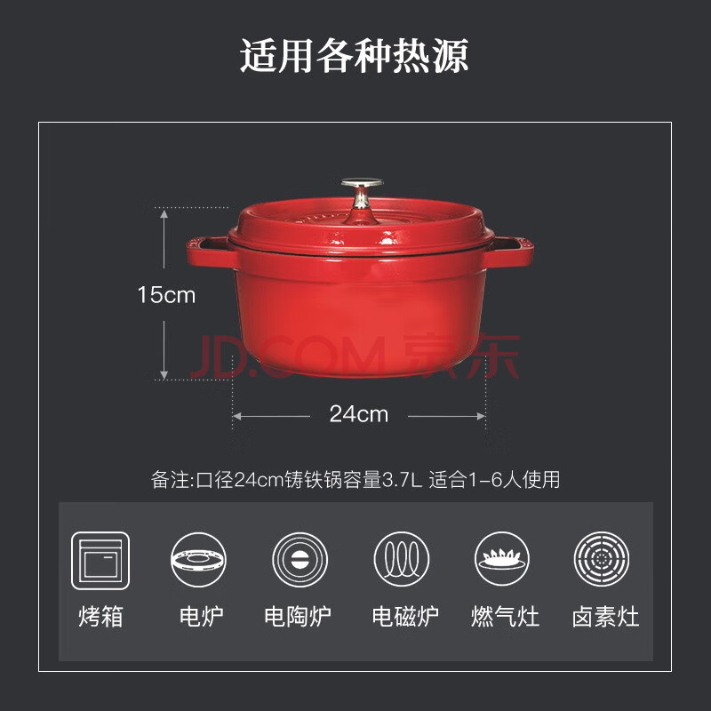 商品相册:珐宝(staub)厨房好物法国进口珐琅铸铁锅双耳煲汤锅 樱桃红24cm 40509-835第