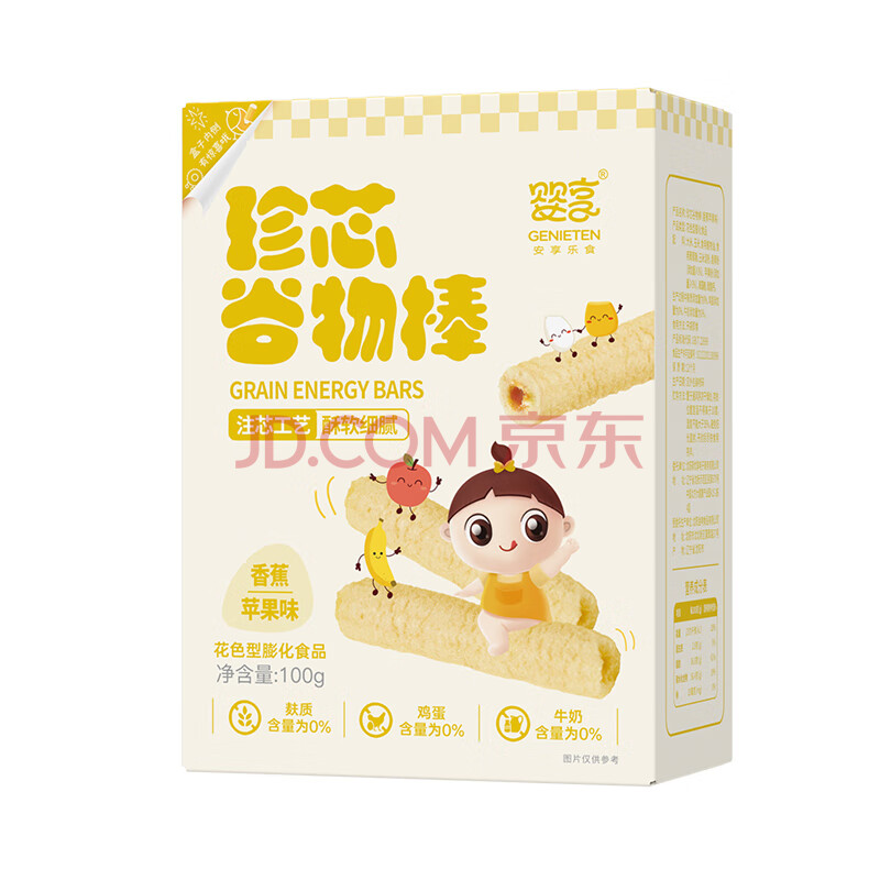 商品相册:婴享无小麦珍芯谷物棒双层夹心儿童零食含婴儿宝宝食谱香蕉苹果味100g第