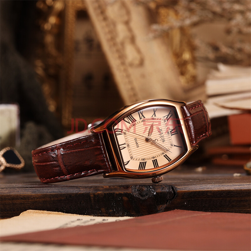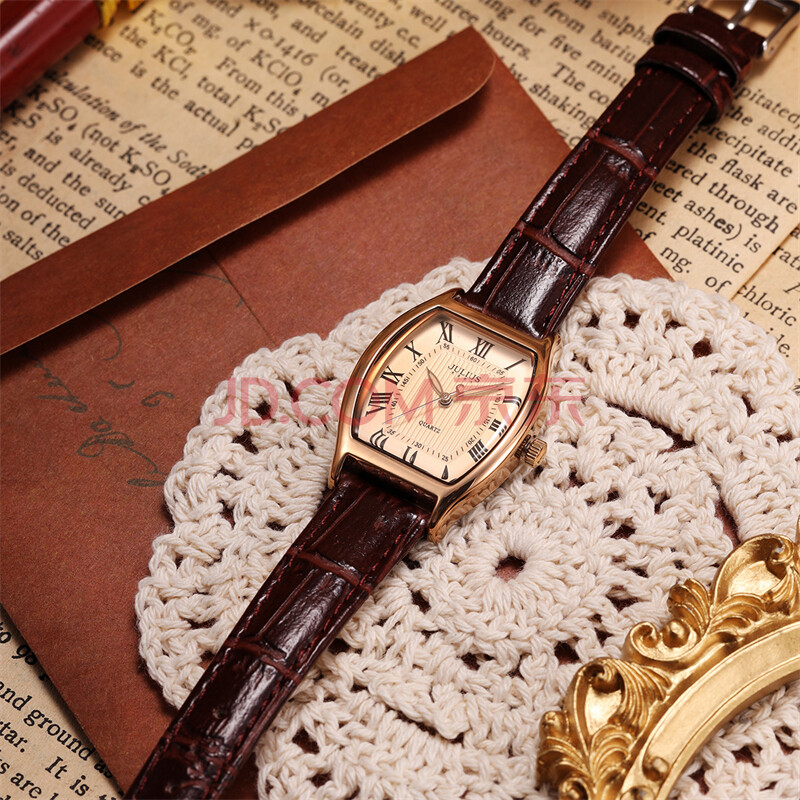 商品相册:聚利时(Julius)手表女酒桶形复古气质百搭石英防水时尚学生女士手表咖色JA-703D第