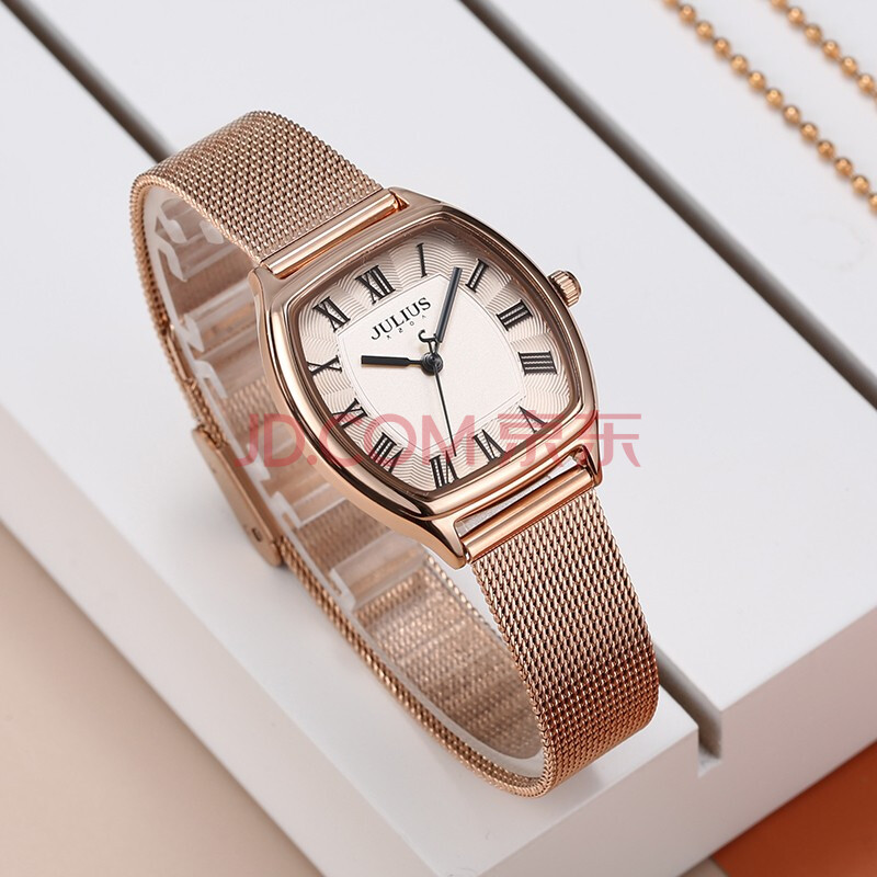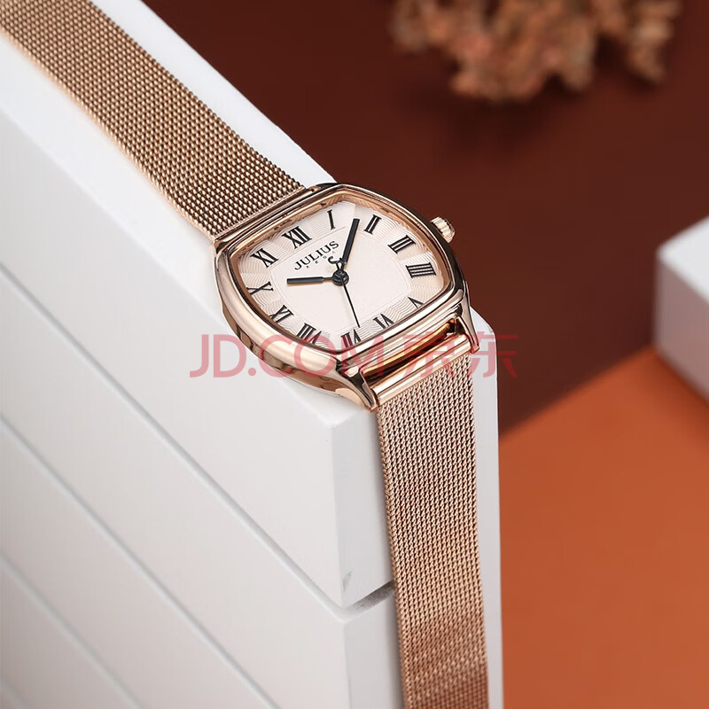 商品相册:聚利时(Julius)手表女简约气质复古小方盘石英防水学生女士手表玫瑰金JA-1242B第