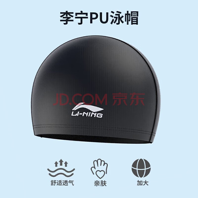 商品相册:李宁(lining) 游泳帽男女舒适长发PU涂层泳帽LSJK858-2蓝色第
