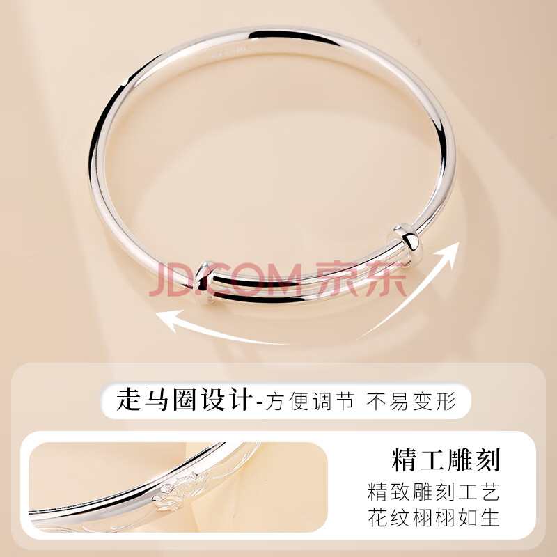 商品相册:老银匠s999足银手镯女士银镯子送女朋友礼物莲花民族风荷花足银手镯第