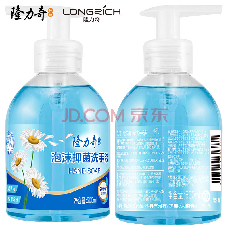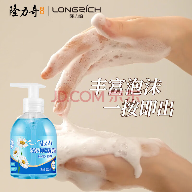 商品相册:隆力奇洋甘菊抑菌泡沫泡泡洗手液易清洗丰富500ml*4(1瓶+3袋补充装)第