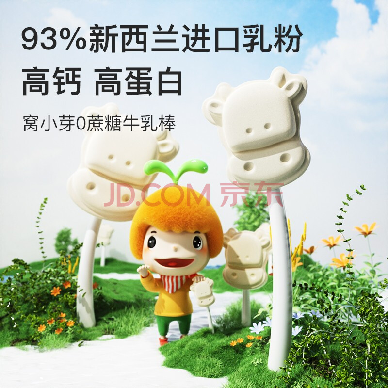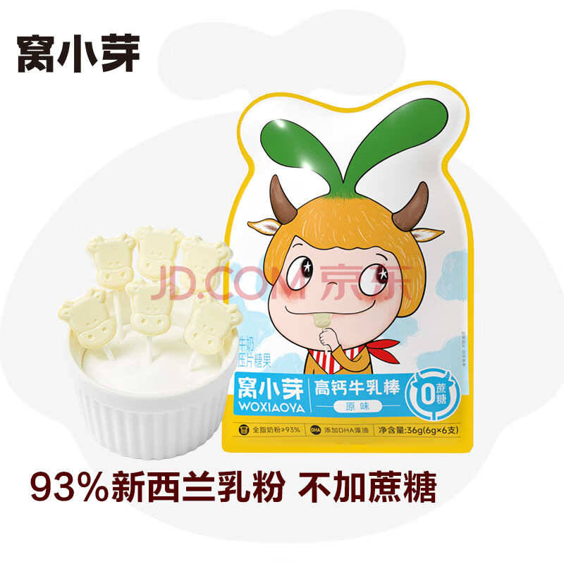 商品相册:窝小芽 儿童零食高钙牛乳棒36g 93%新西兰进口乳粉高蛋白零蔗糖奶条第