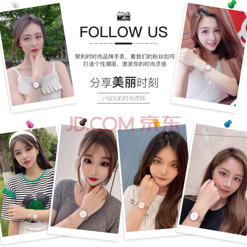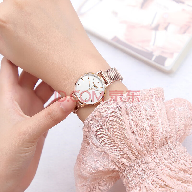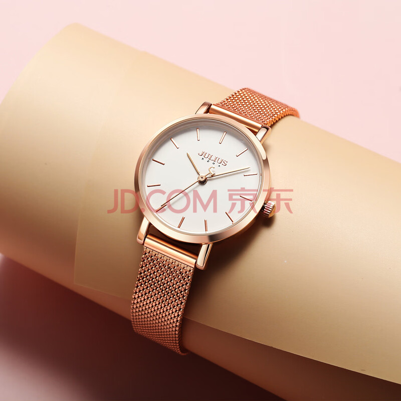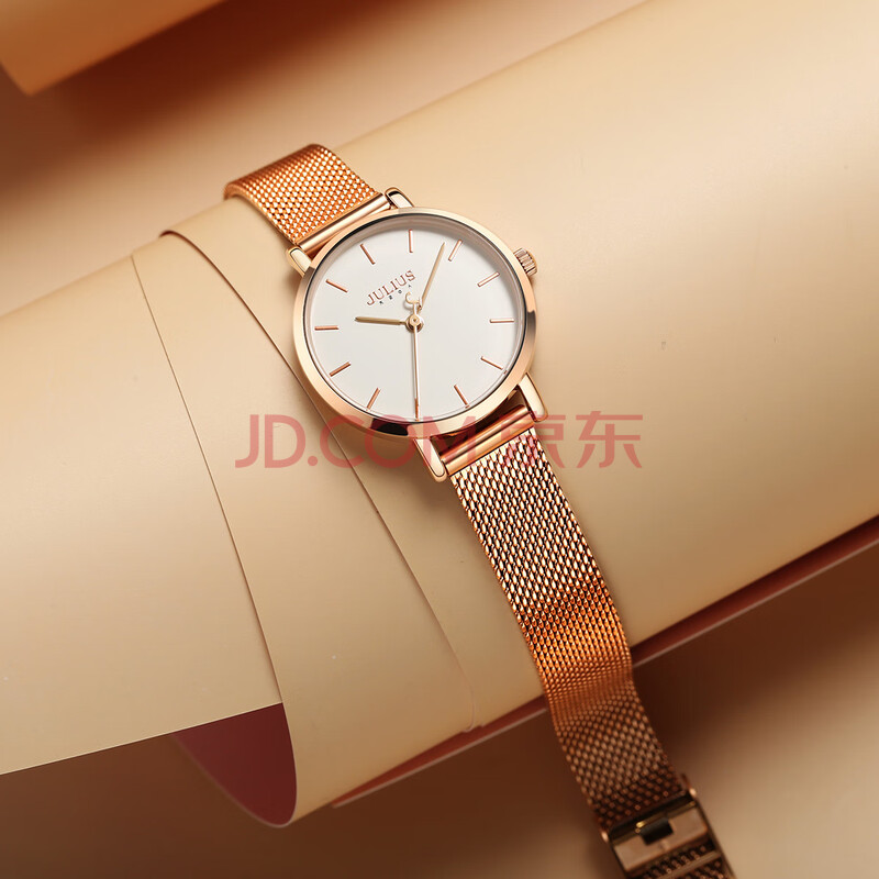 商品相册:聚利时(Julius)手表女时尚学生简洁大方潮流防水石英女士手表玫金白面JA-1164LC第