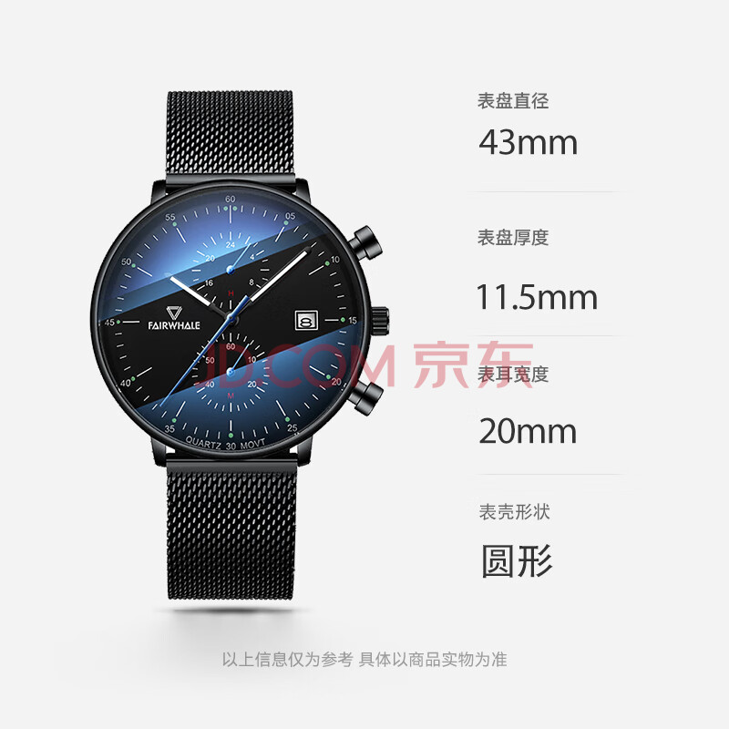 商品相册:马克华菲(MARK FAIRWHALE)男士公务员考试专用手表学生大开窗日历指针静音夜光防水腕表5400第