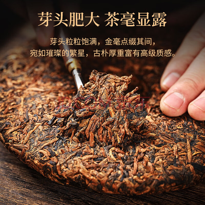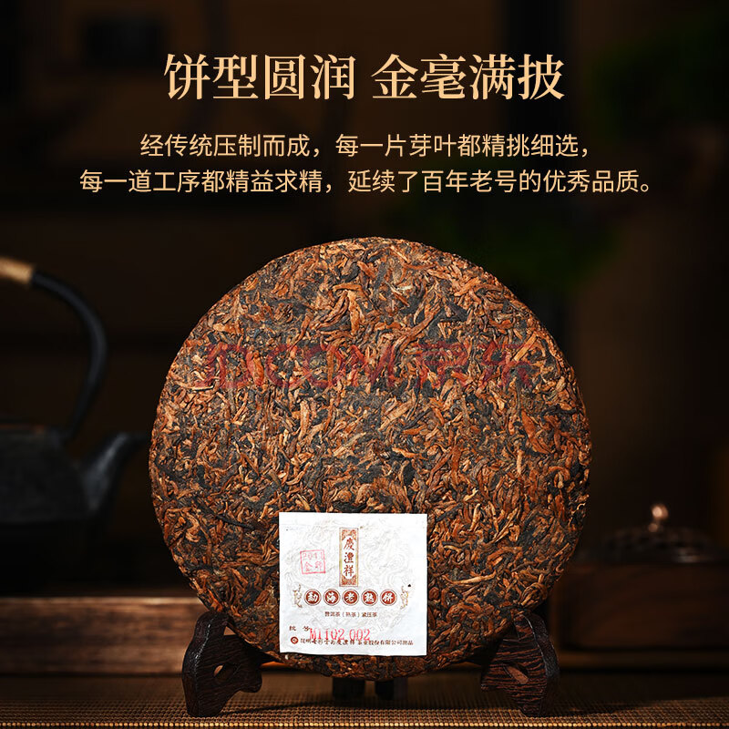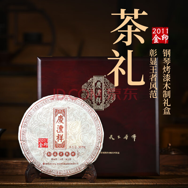 商品相册:七彩雲南庆沣祥茶叶 普洱茶熟茶2011年勐海陈料金印357g 木质茶叶礼盒送礼第