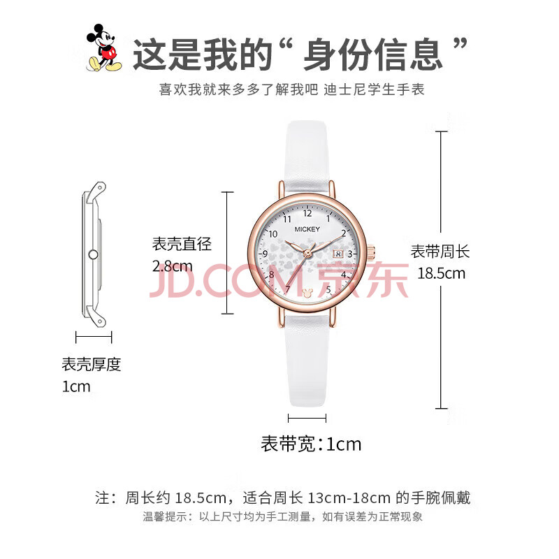 商品相册:迪士尼(Disney)手表女学生简约防水儿童手表带日历中小学生考试用表MK-11300W第