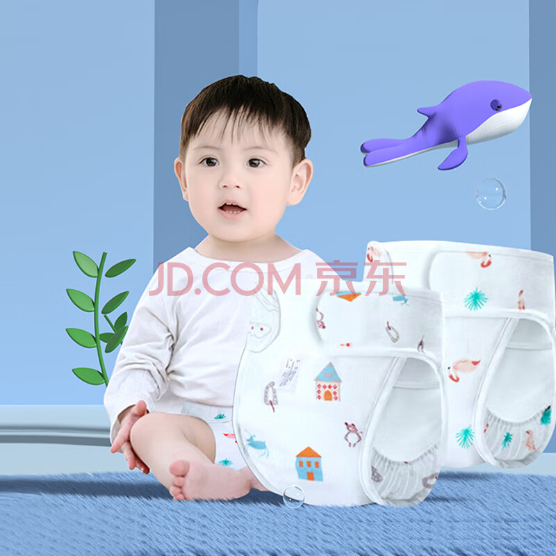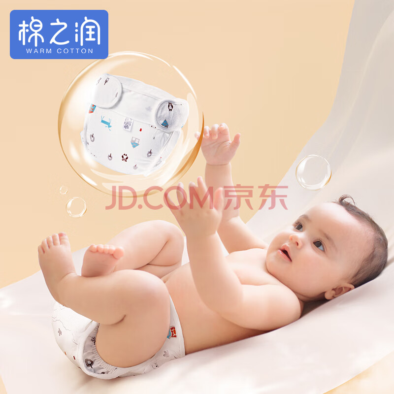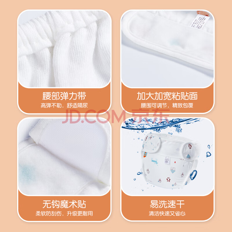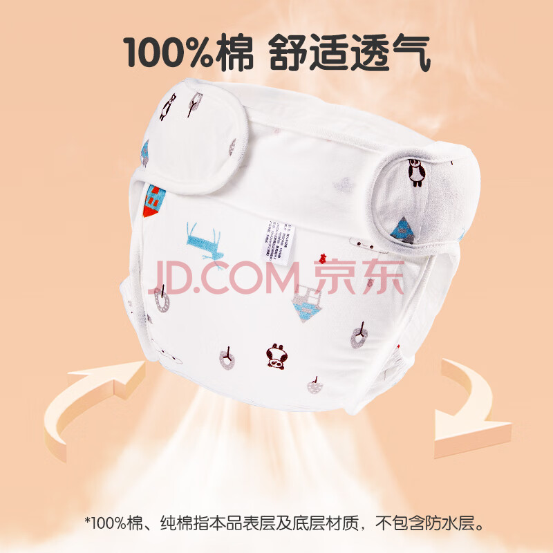 商品相册:棉之润婴儿尿布兜 宝宝纯棉隔水隔尿裤防侧漏透气尿布裤松紧带S码2条装第