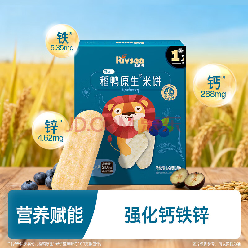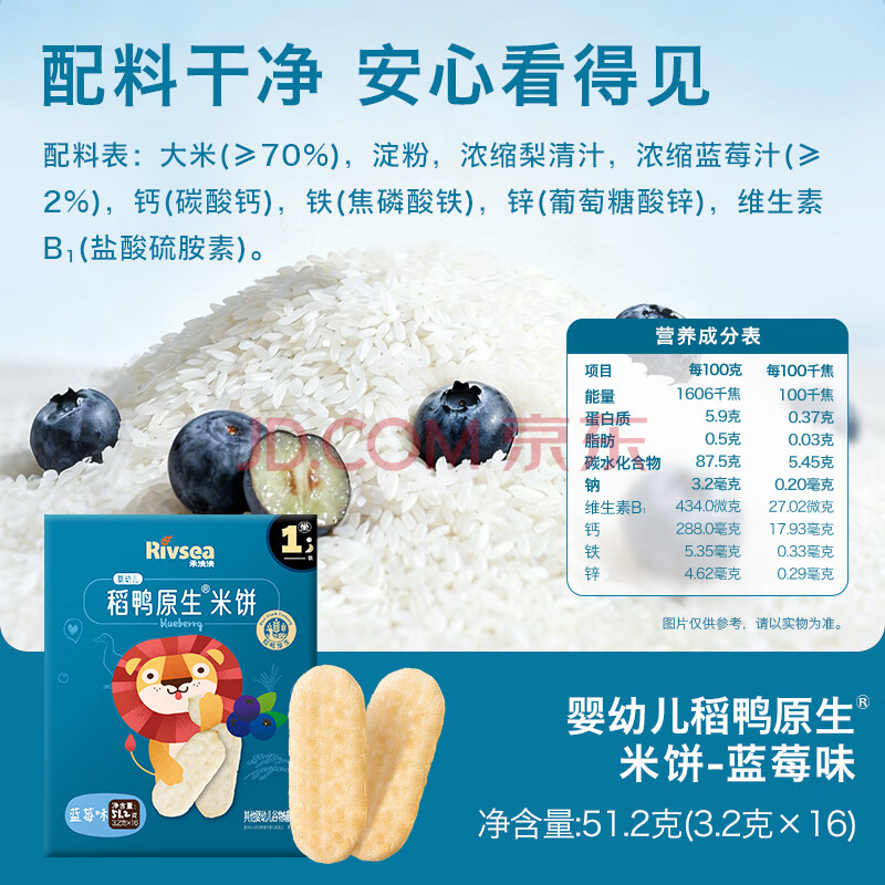 商品相册:禾泱泱婴幼儿米饼蓝莓味 宝宝婴儿零食 稻鸭原生高钙51.2g(32片) 6月+第