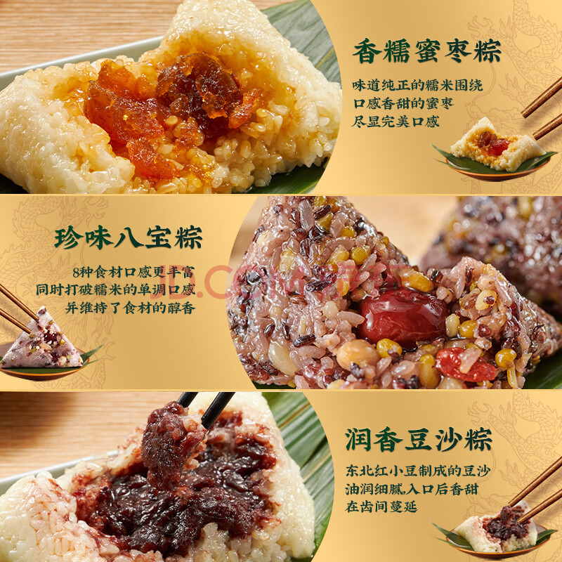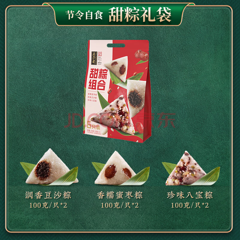 商品相册:五芳斋粽子中华老字号 3味6粽100克*6只 甜粽礼袋600g 嘉兴特产加热即食第