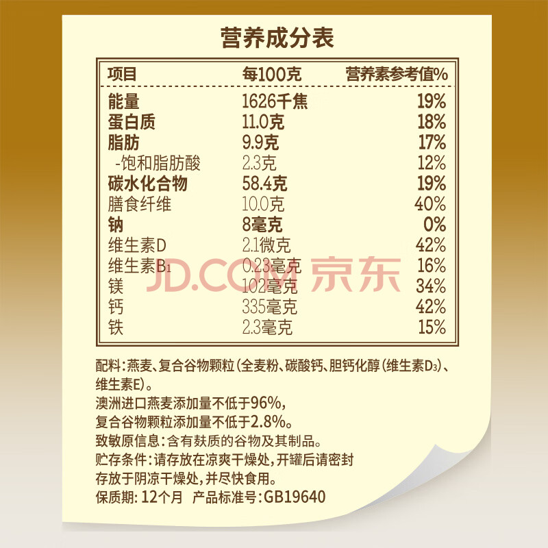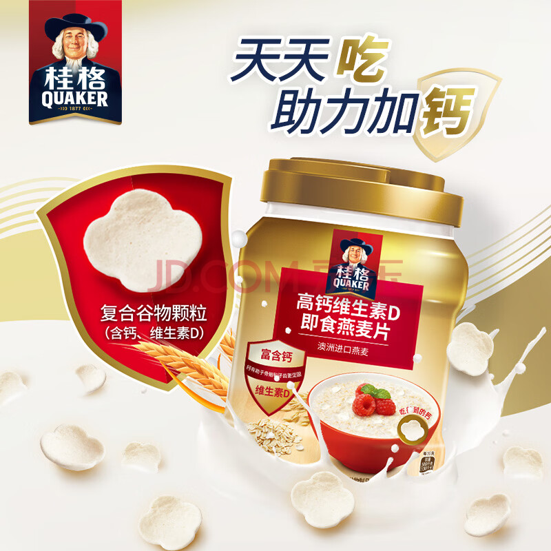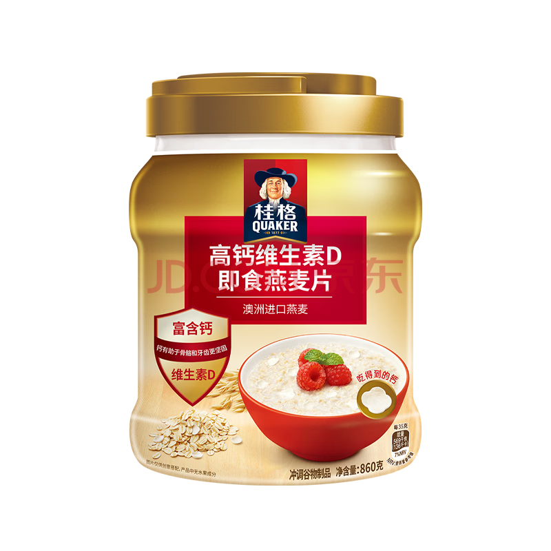 商品相册:桂格(QUAKER)高钙维生素D燕麦片860克 营养早餐 零添加白砂糖 送老人第