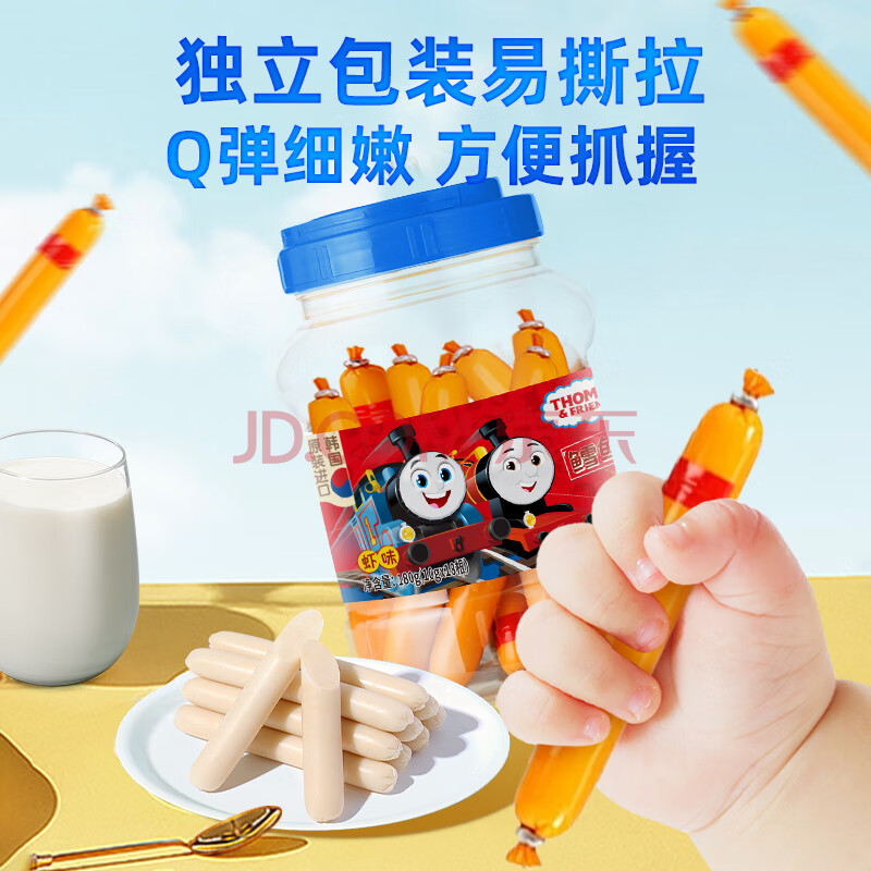 商品相册:小火车(THOMAS & FRIENDS)深海鳕鱼肠虾肉 托马斯韩国进口宝宝零食儿童鱼肉肠 虾味180g第