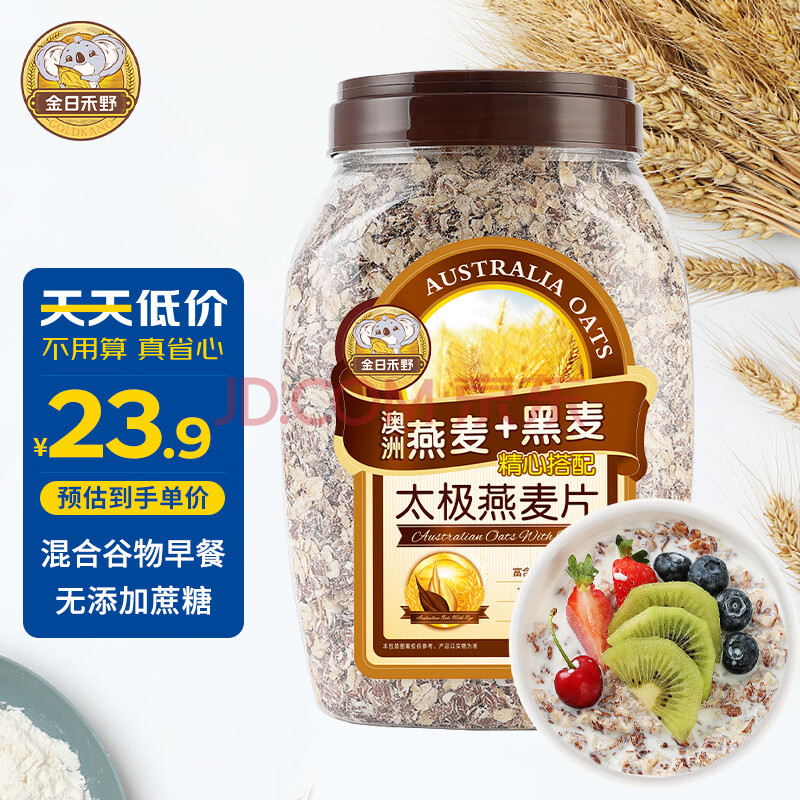 商品相册:金日禾野太极即食黑麦燕麦片900g 无添加蔗糖营养高纤低脂健身代餐燕麦片第