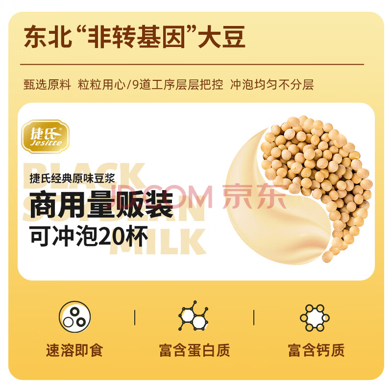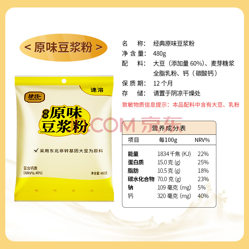 商品相册:捷氏 原味速溶豆浆粉480g非转基因大豆高蛋白质冲饮谷物孕妇早餐食品第1张/共6