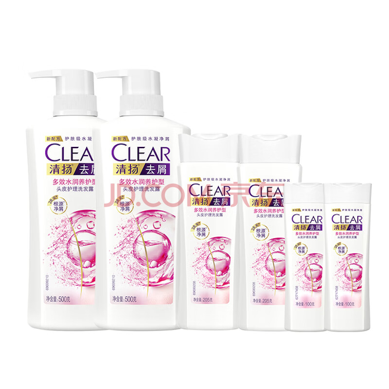 商品相册:清扬女士去屑洗发水 多效水润1410g+试用装100gx2 玻尿酸净屑洗头膏第