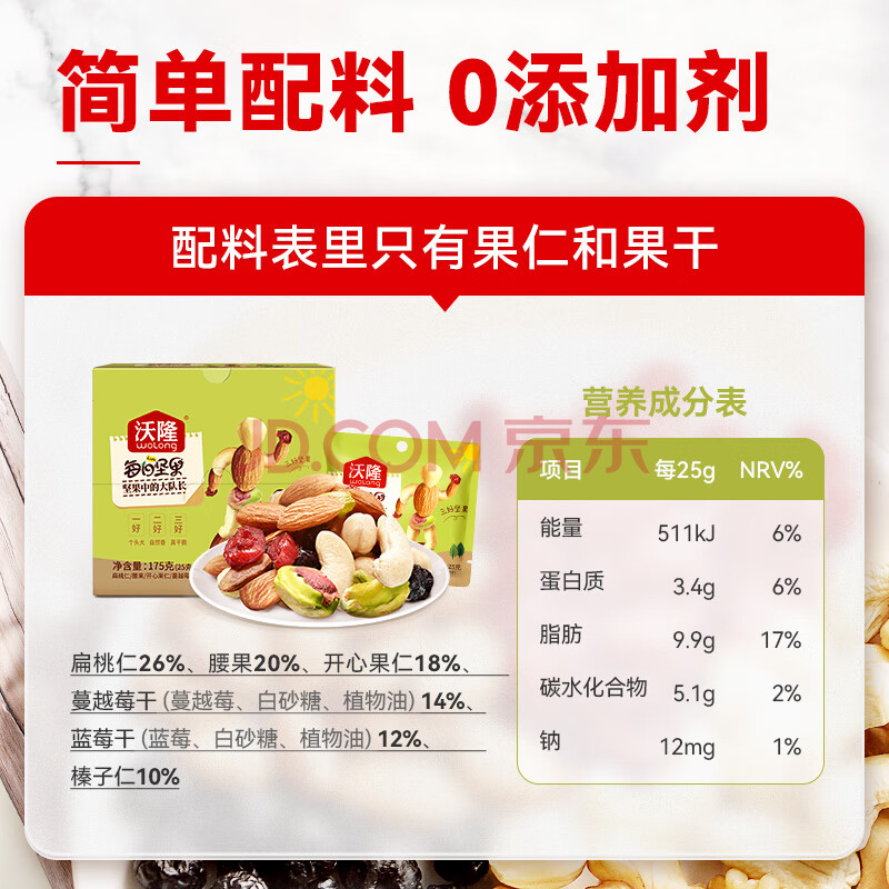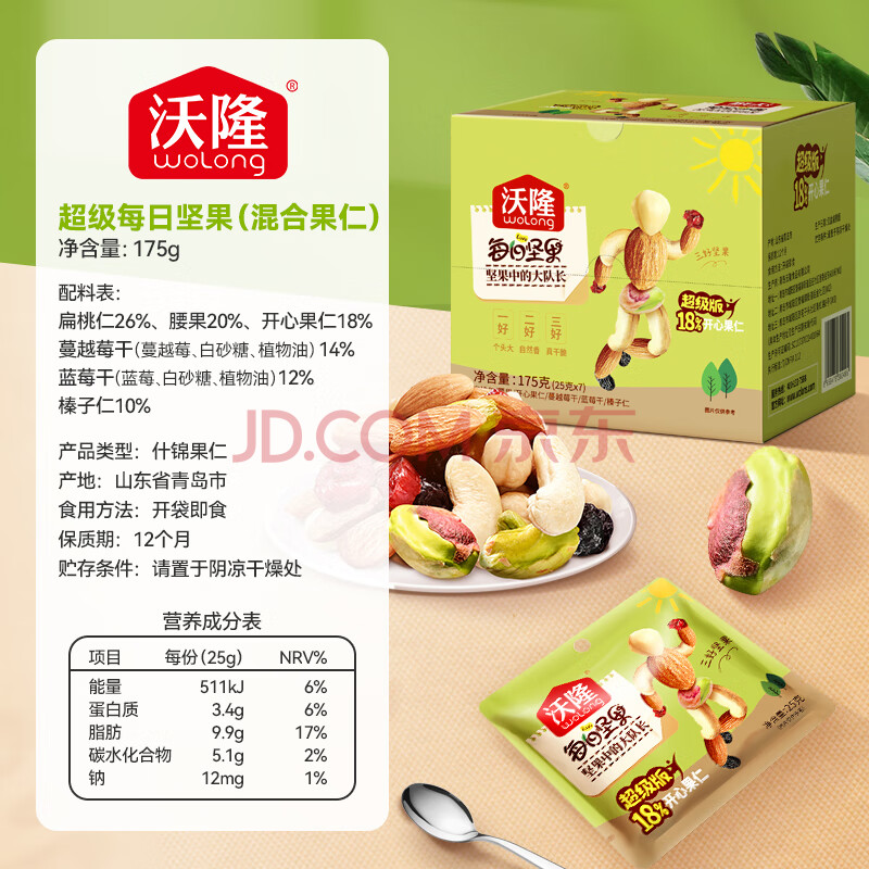 商品相册:沃隆超级每日坚果175g/7袋混合坚果含18%开心果仁休闲零食小包装第1张/共8