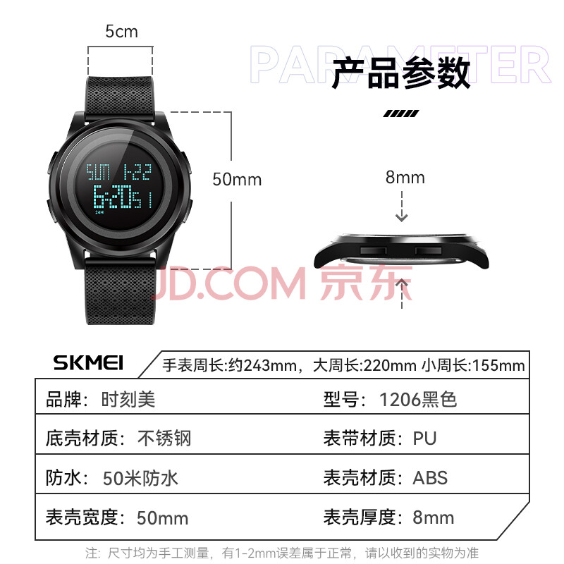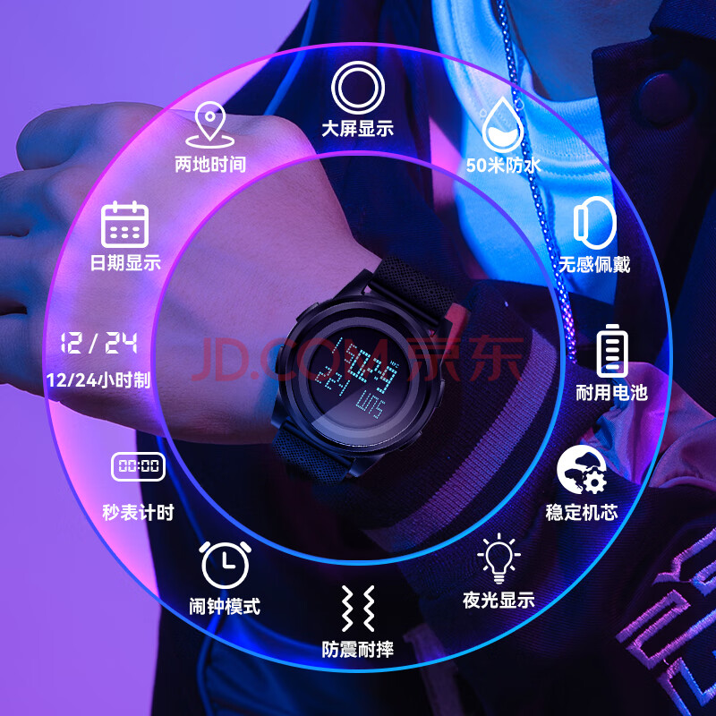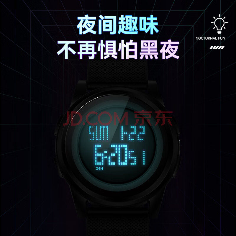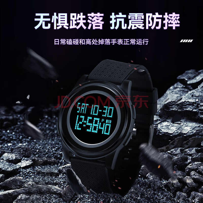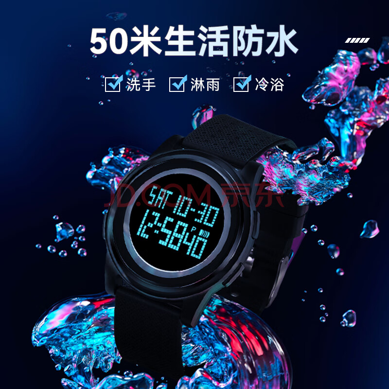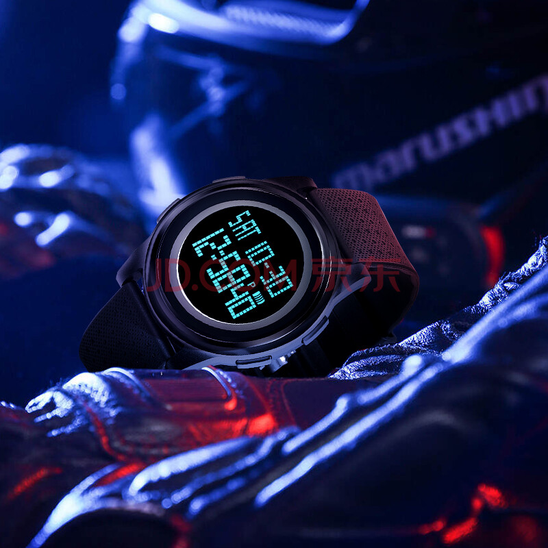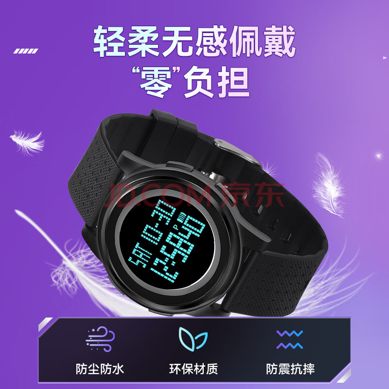 商品相册:时刻美(skmei)学生儿童手表防水闹钟6-12岁初高中生青少年电子表防水男1206黑色第