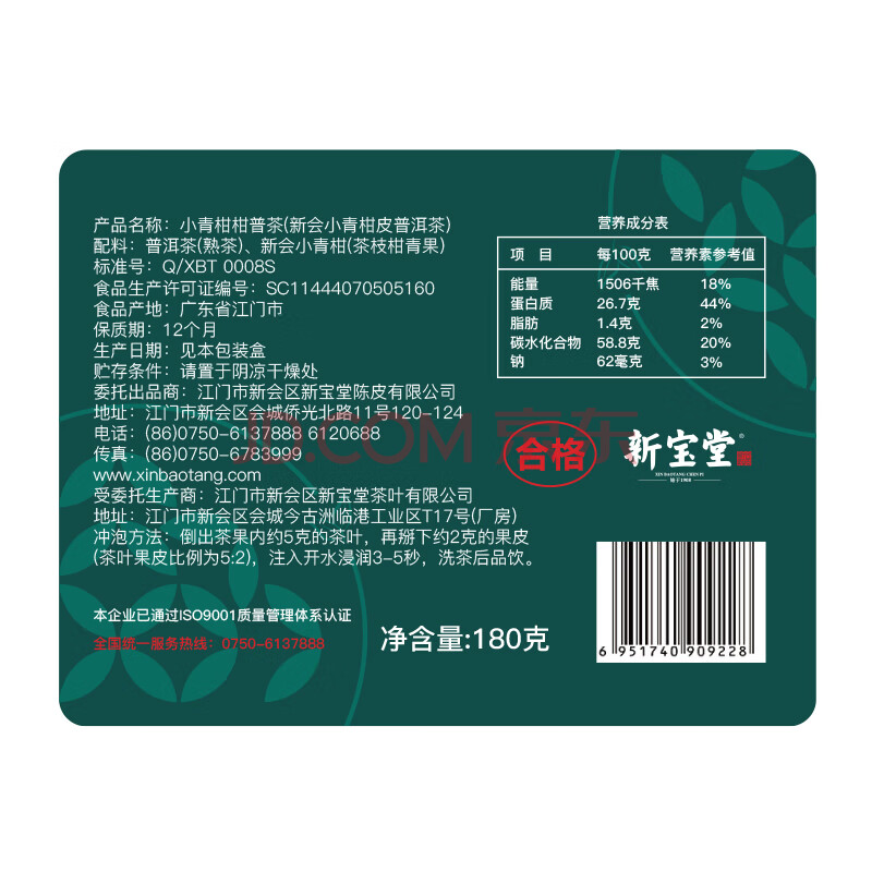 商品相册:岭南新宝堂 小青柑茶叶180g 包装盒+手提袋第