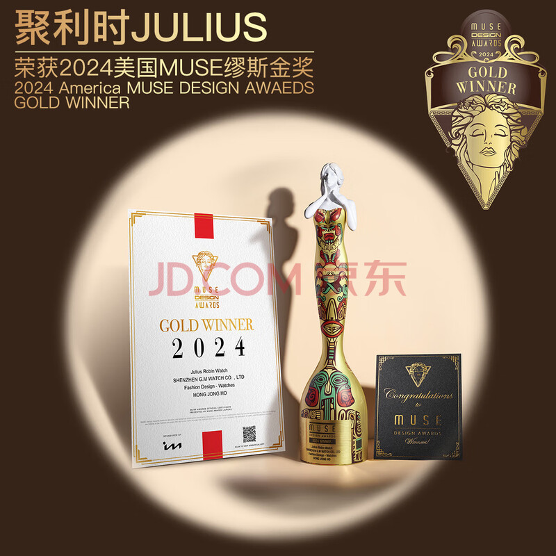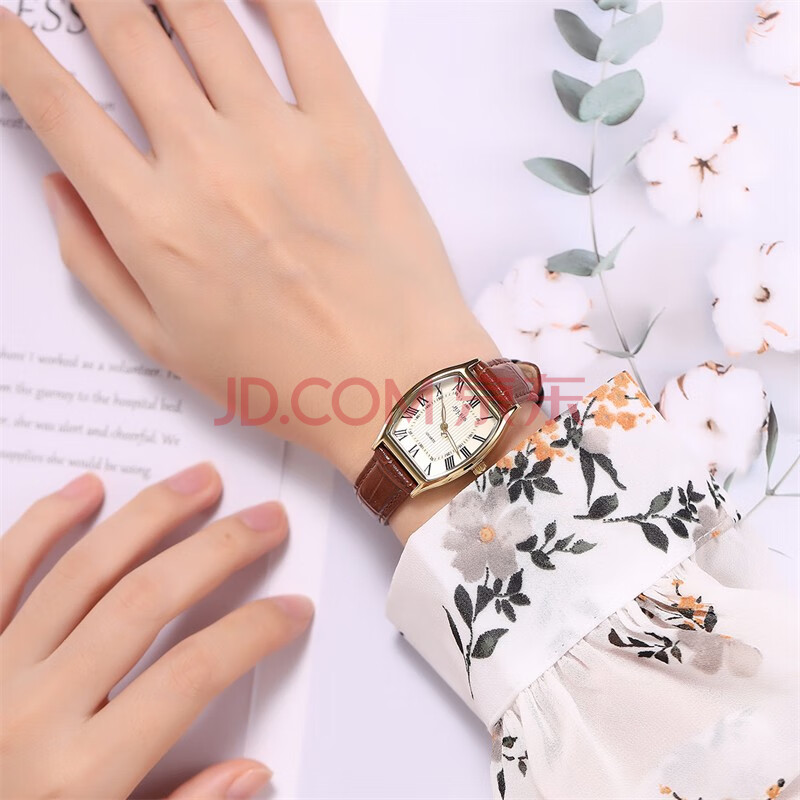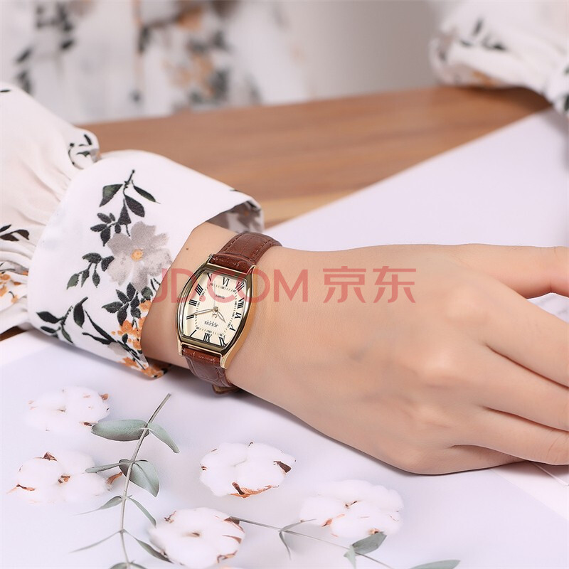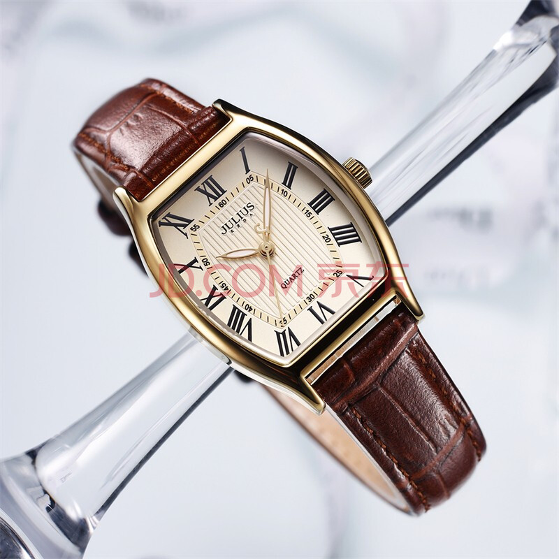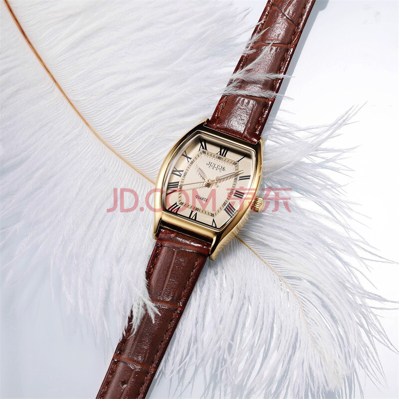 商品相册:聚利时(Julius)手表女酒桶形复古时尚气质石英防水学生女士手表棕带金壳JA-703C第