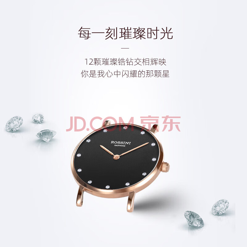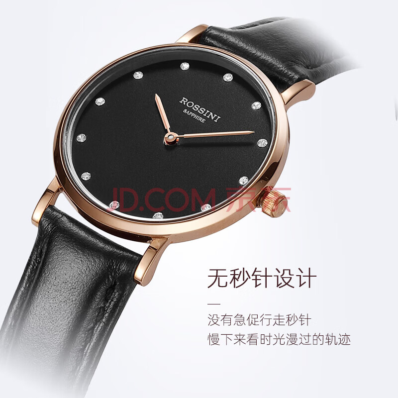 商品相册:罗西尼(ROSSINI)手表女石英表黑盘皮带学生日礼物送女友国表简约超薄休闲 517770第