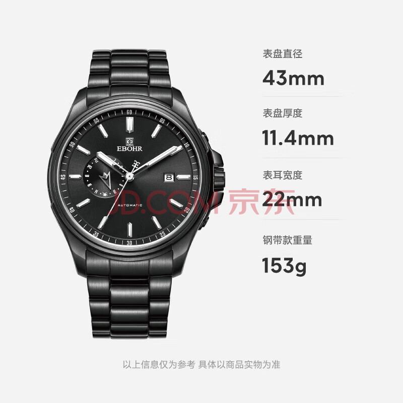 商品相册:依波(EBOHR)手表男 探索者系列潮流生日节日礼物男士黑钢带机械手表51260316第
