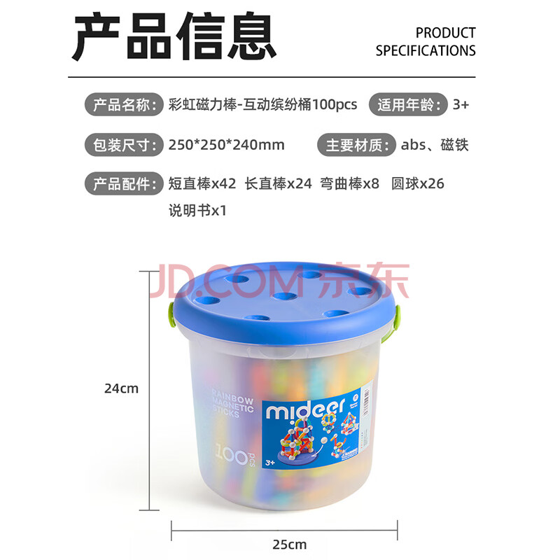 商品相册:弥鹿(MiDeer)儿童玩具磁力棒磁力自由拼插磁铁玩具彩虹磁力棒100件儿童礼物第