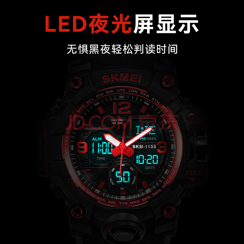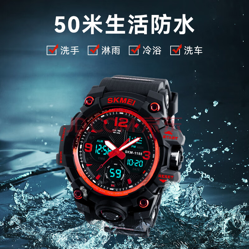 商品相册:时刻美(skmei)学生手表潮流双显防水闹钟运动电子表初高中生青少年儿童男1155B第