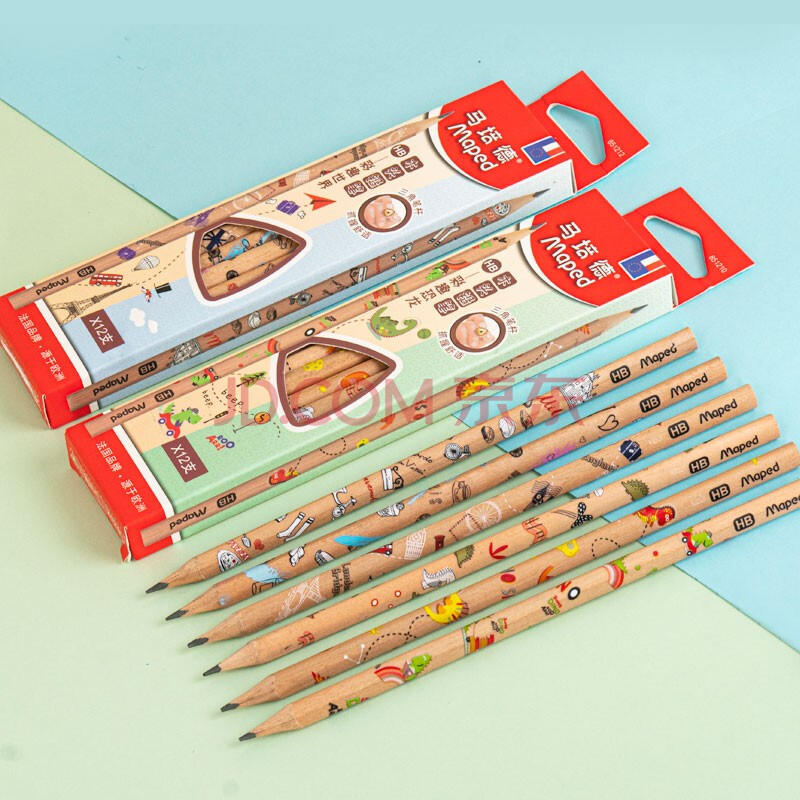 商品相册:马培德(Maped)彩趣世界原木铅笔HB 三角杆铅笔练字素描绘图铅笔 学生正姿书写练字笔 851212CH【12支/盒】第