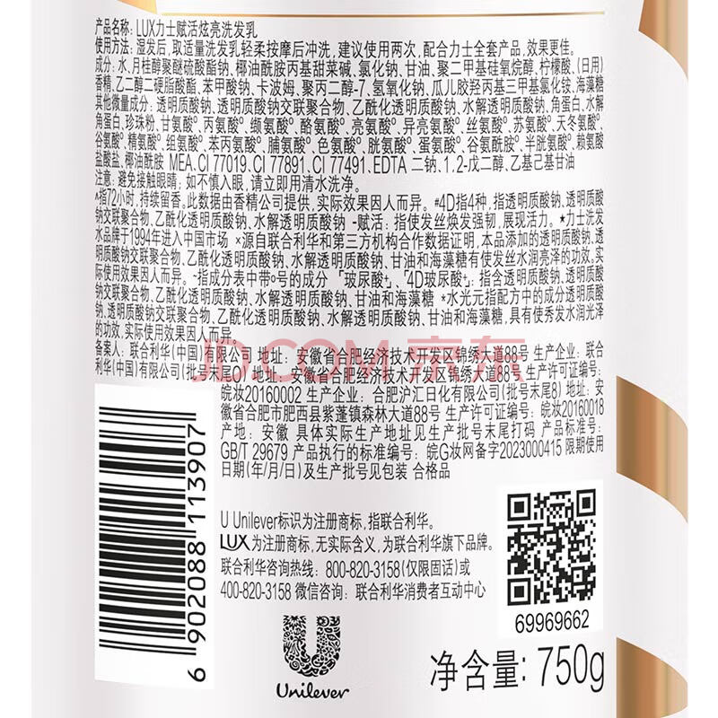 商品相册:力士(LUX)玻尿酸赋活炫亮强韧洗发水750g水光瓶 留香洗发露第