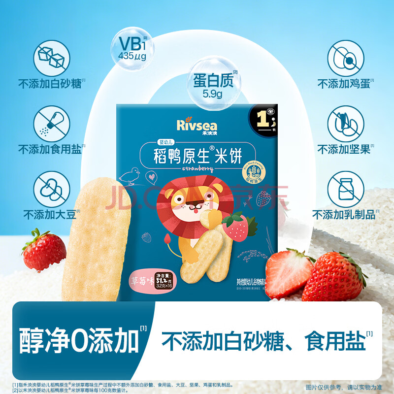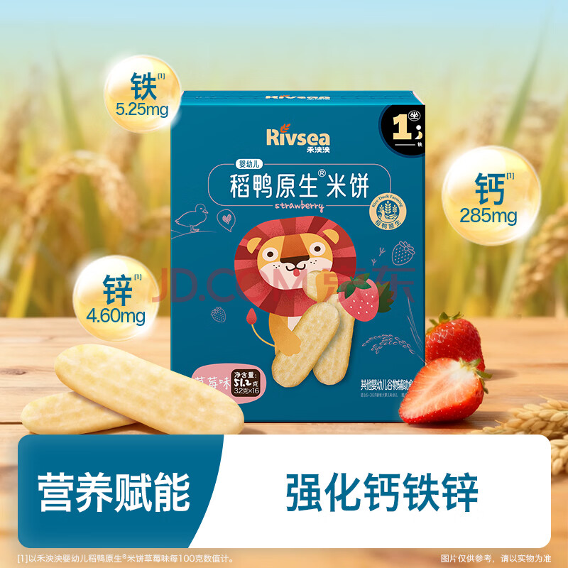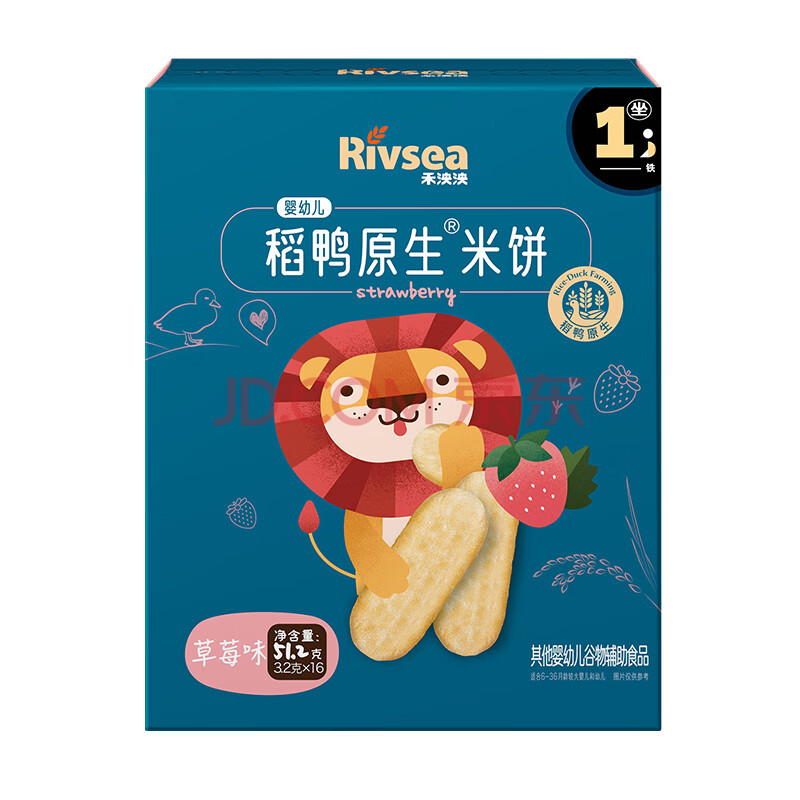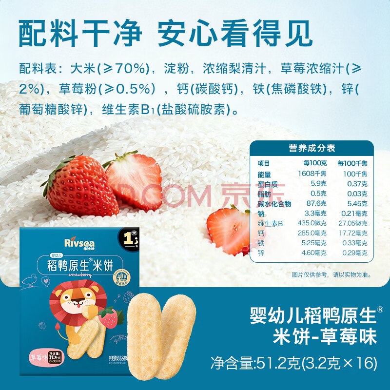 商品相册:禾泱泱婴幼儿米饼草莓味51.2g(32片) 稻鸭原生高钙宝宝零食6月+第