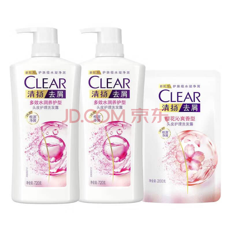 商品相册:清扬女士去屑洗发水 樱花沁爽720gx2+试用装200g 烟酰胺净屑止痒留香第