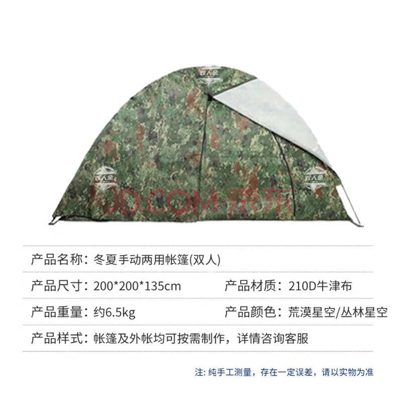 商品相册:双人余 冬夏两用手动帐篷 户外双层加厚防寒保暖防雨 荒漠棉外罩帐篷第