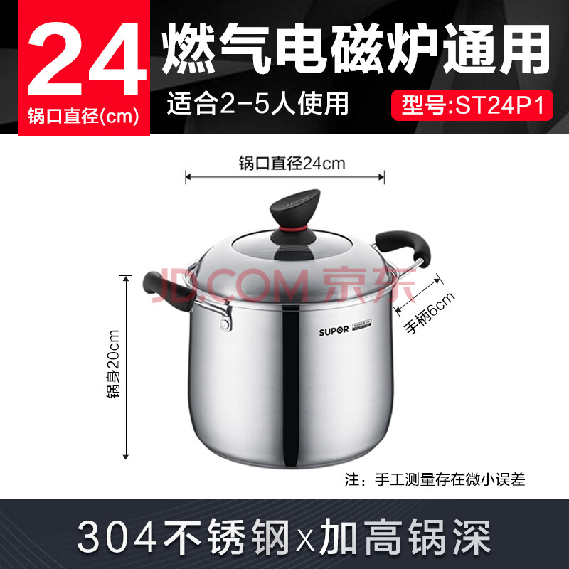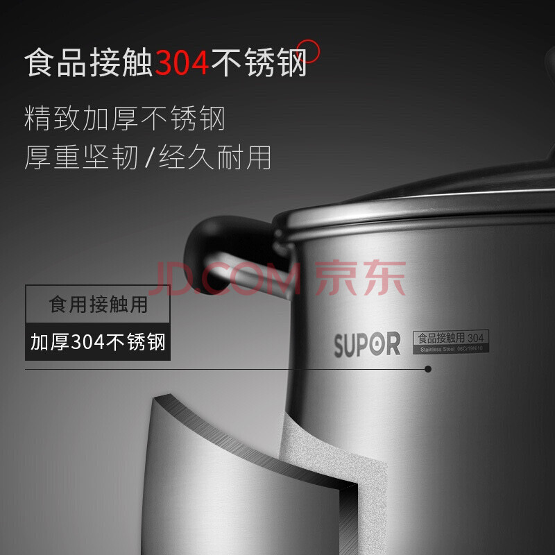 商品相册:苏泊尔SUPOR 小红圈304不锈钢汤锅24cm复底加厚加大炖锅ST24P1第1张/共6