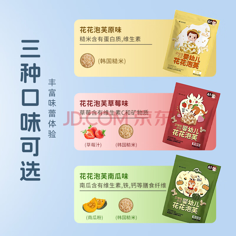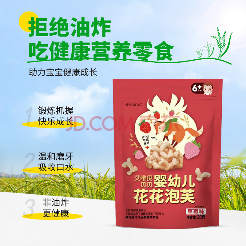 商品相册:艾唯倪(ivenet)婴幼儿花花泡芙辅食磨牙棒宝宝零食6个月以上婴儿零食 草莓味20g第